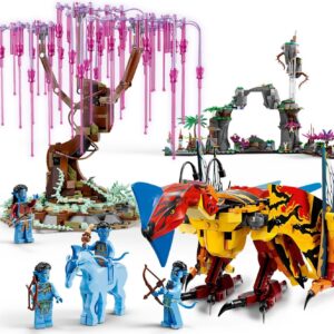 • Contenido de la caja: Este set LEGO® incluye 4 minifiguras, figuras de animales (un Toruk y un Direhorse con antenas para crear vínculos), un Árbol de las Almas construible y 3 escenas de entornos con elementos que brillan en la oscuridad