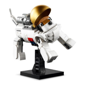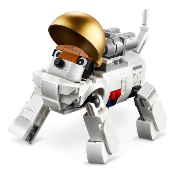 Los niños y las niñas construirán 3 juegos espaciales diferentes: el Astronauta Espacial articulado, un perro espacial futurista con patas y cola articuladas, o una nave de ataque espacial con asiento para la minifigura que la pilote (no incluida). Los 3 modelos son estupendos regalos creativos de temática espacial y vienen con bases de exposición.