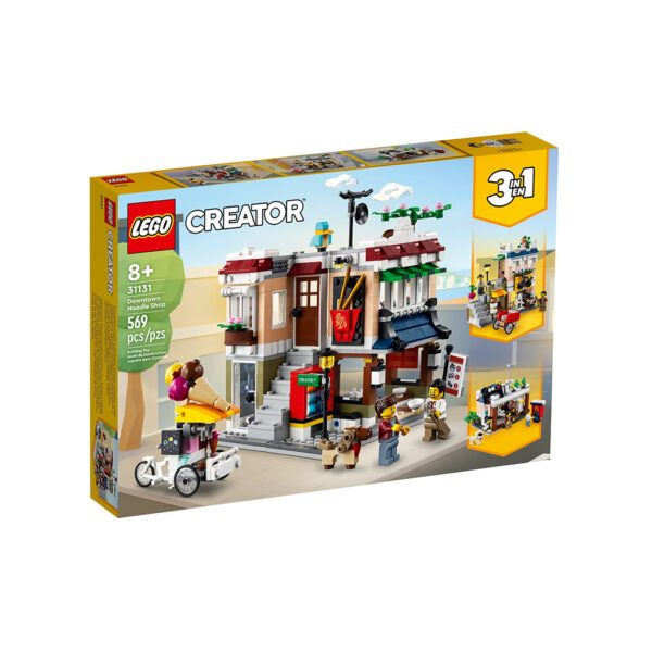 - Juguete 3en1: Los niños podrán interpretar emocionantes historias con el set LEGO® Creator 3en1 Restaurante de Fideos del Centro (31131), que se compone de 3 modelos en 1 (un edificio con restaurante, una tienda de bicicletas y un salón recreativo)