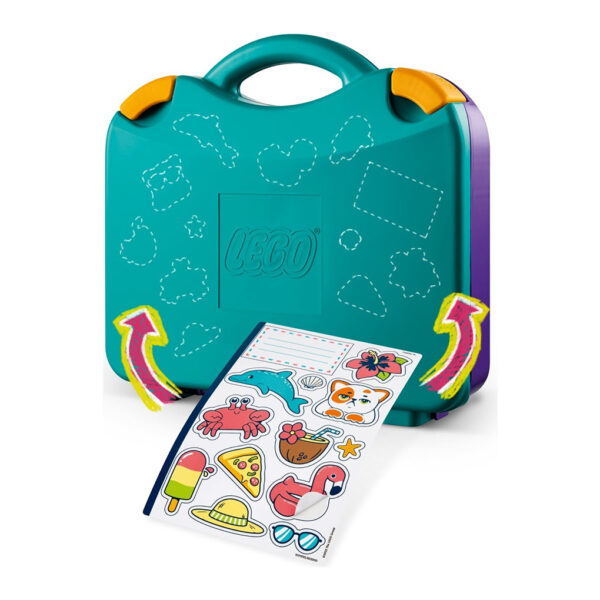 Maleta personalizable:Este set LEGO® viene con una lámina de pegatinas para que los peques se diviertan personalizando la maleta, que cuenta con espacio para guardar todas las piezas hasta la siguiente aventura creativa de vacaciones