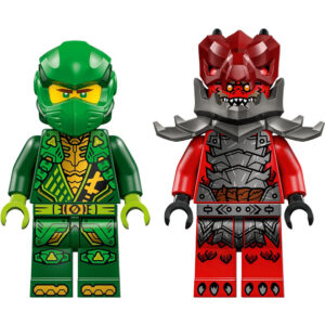 El kit de construcción trae 2 minifiguras NINJAGO: Lloyd (con 2 catanas doradas) y un infame guerrero Dragónido (con una espada). El set de construcción contiene también 2 elementos que representan rayos para crear un pequeño circuito de obstáculos.