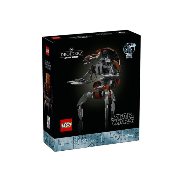 - Pieza de exposición para celebrar el 25 aniversario: Este exclusivo set incluye una base con espacio para la pequeña figura LEGO® de un Droideka, una placa de datos sobre los Droidekas y un ladrillo por el 25 aniversario de LEGO Star Wars™